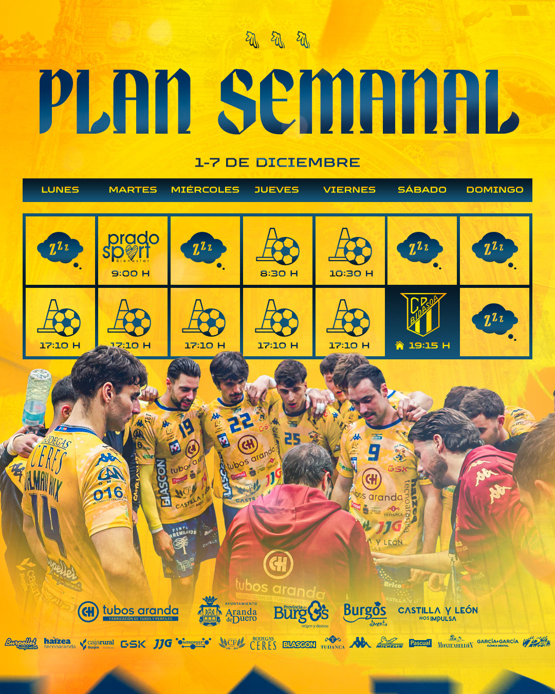 Una identidad construida a partir de los colores corporativos del club y una tipografía gótica, inspirada en el carácter arquitectónico de Aranda y en elementos reconocibles de la ciudad, como su iglesia.